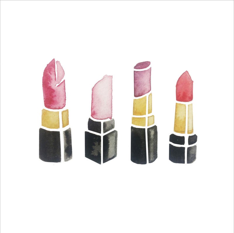 Alicia Zyburt, MAKE ME GORGEOUS III (Schminke, Lippenstifte, Aquarell, modern, Schminkzimmer, Badezimmer, Wunschgröße, bunt)