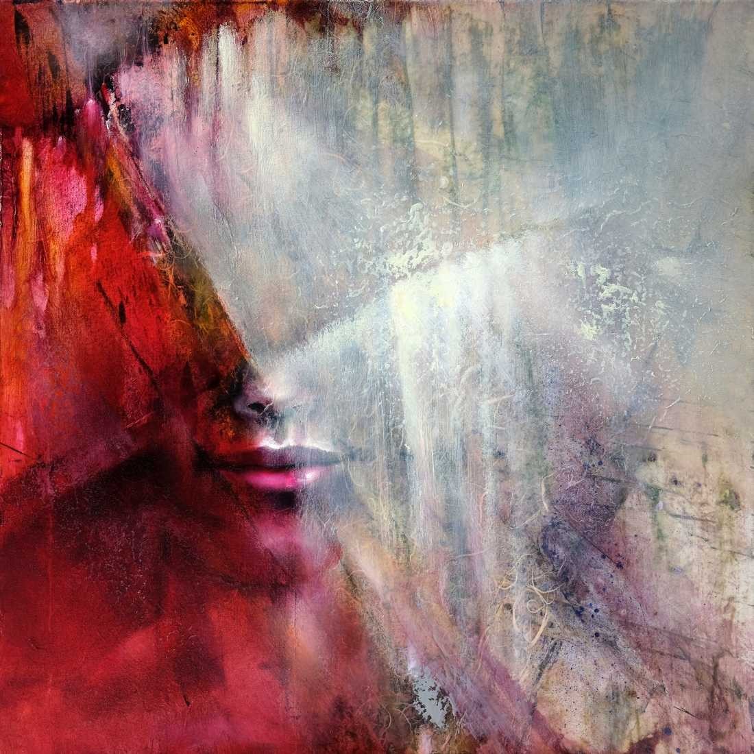 Konfiguration benutzen (Halb-Portrait, Frau,  abstrakter Hintergrund, zart, filigran, Malerei, Treppenhaus,  Wohnzimmer, Wunschgröße, rot/grau)