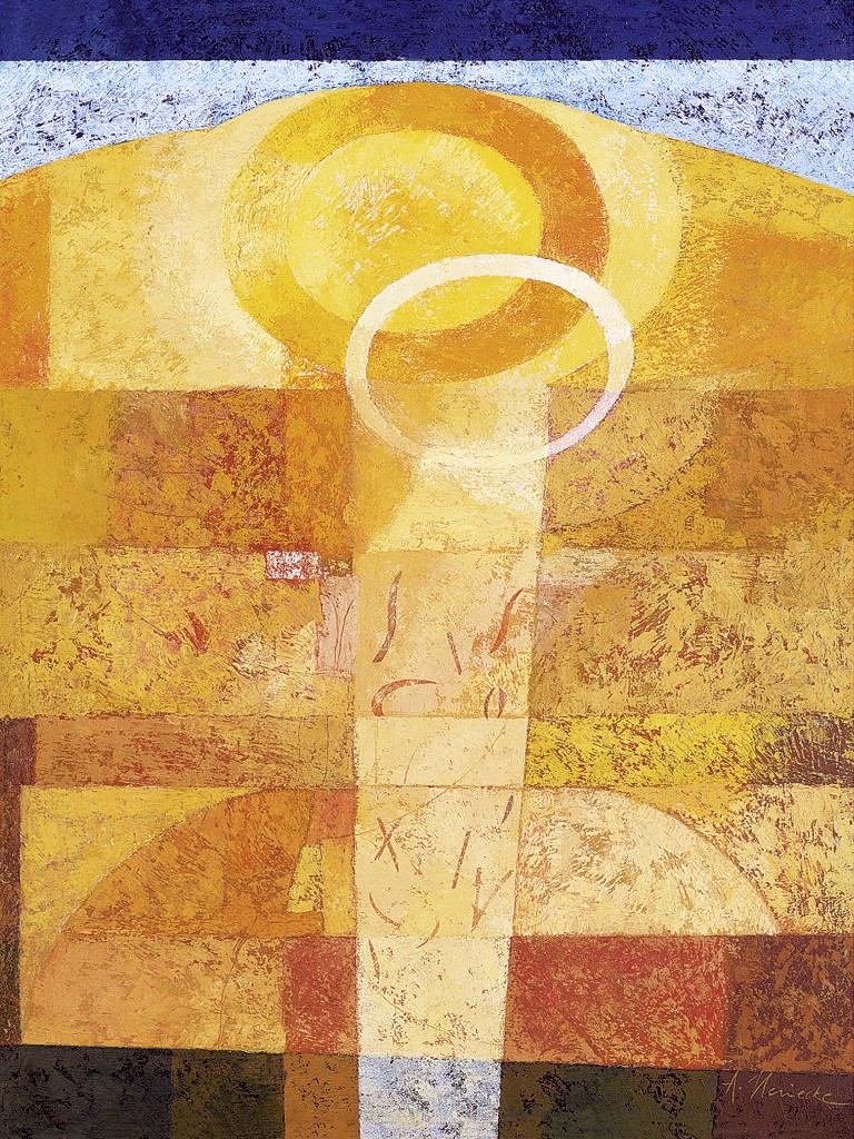 Astrid Heinecke, Signo (Abstrakt, abstrakte Malerei, Moderne, abstrakte Muster, geometrische Formen,  Farbfelder, Wohnzimmer, Büro, gelb/rot)