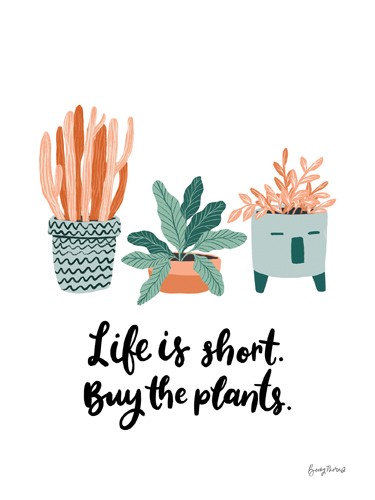 Becky Thorns, Life is Short (Spruch, Motto, Kalligrafie, Pflanzen, Blätter, Blumentöpfe, Topfpflanzen, Grafik, Inspiration, Motivation, Wunschgröße, Treppenhaus)