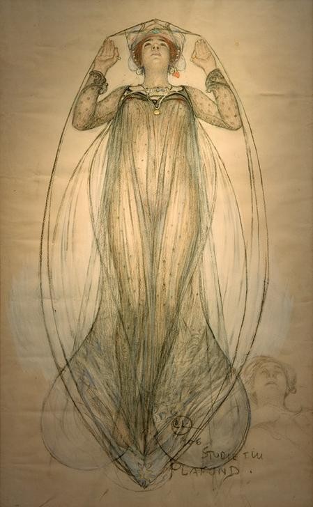 Carl Larsson, Das Drama (Frau,Jugendstil,Theater,Schleier,Allegorie,Foyer,Schwedische Kunst,Schauspiel,Entwurf,Blick Zum Himmel,Personifizierung)