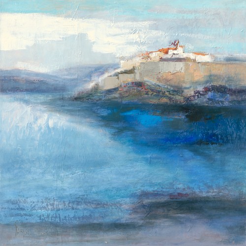 Chantal Parise, Cavi (Wunschgröße, Malerei, Meeresbrise, Küstenlandschaft, Felsenküste, Steilküste, Meer, Dorf, Schlafzimmer, Wohnzimmer, bunt)