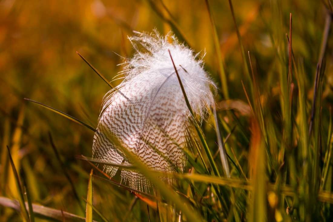 Feder - Gras - Frühtau - morgens - frühnebel - gelandet - flaum - Fotografie - Makro -