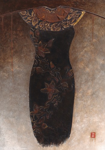 Diana Thiry, Asian Dress I (Wunschgröße, Kleid, Bekleidung, asiatische Kunst, Eleganz, traditionell, Wunschgröße,   Symbolik,  Treppenhaus, Wohnzimmer)