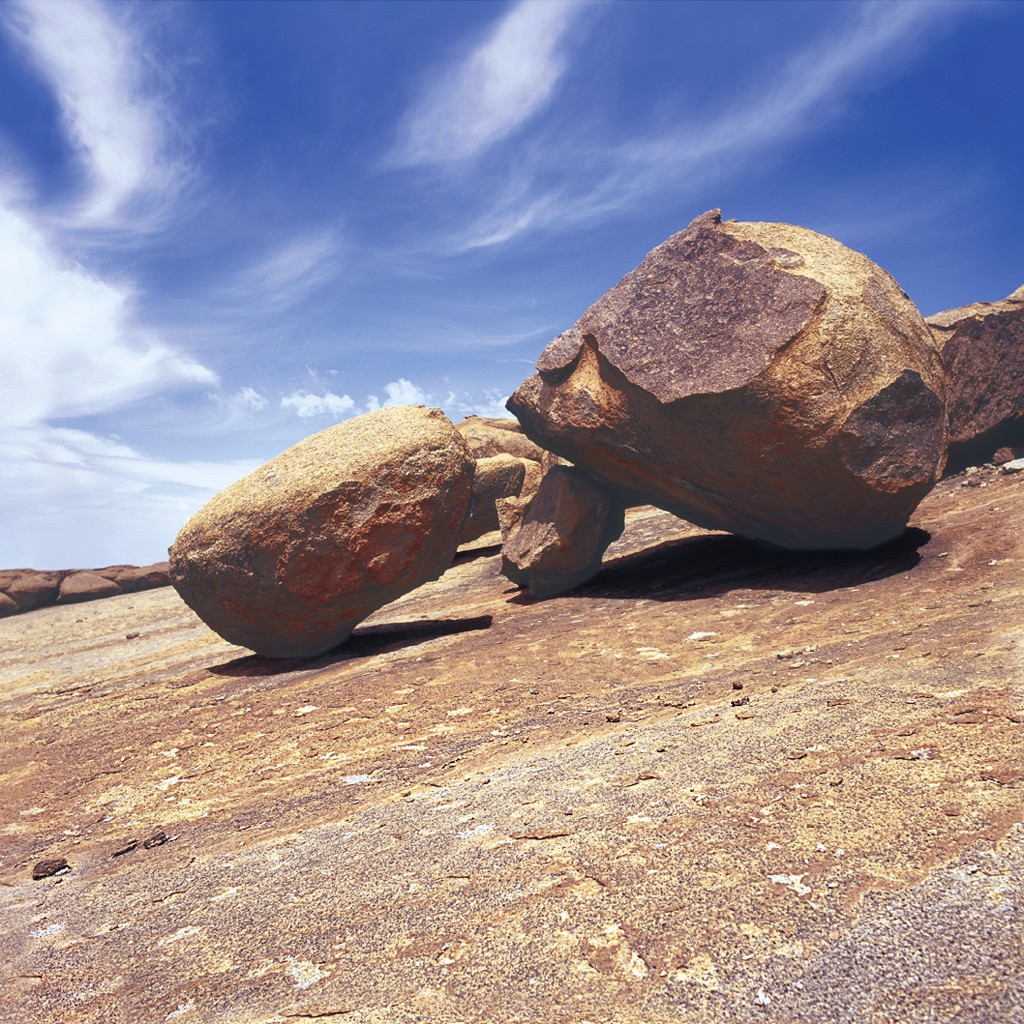 Dirk Masbaum, Etosha (Natur & Landschaft, Steine, Findlinge, Schräglage, Trockenheit, Himmel, Fotografie, Wohnzimmer, Treppenhaus, bunt)