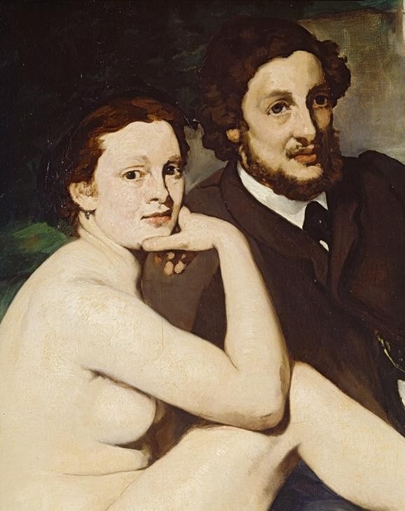 Edouard Manet, Le déjeuner sur l’herbe (Ausflug,Bad Im Freien,Erotik,Freikörperkultur,Frau,Herrenmode,Jugend (Lebensalter),Kunst,Landschaft,Mädchen,Mann,Mode,Picknick,Freizeit,Urlaub,Tageszeiten,Morgen,Student,Akt,Frühstück,Portrait,Reise,Französische Kunst,Im Freien (Allgemein),Nacktheit,Paar,)
