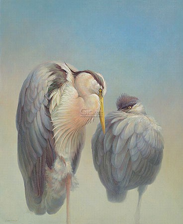 Erik van Ommen, Grey herons (Malerei, Natur, Tierwelt, Graureiher, Reiher, Vögel, naturgetreu, realistisch, Wohnzimmer, Schlafzimmer, bunt)