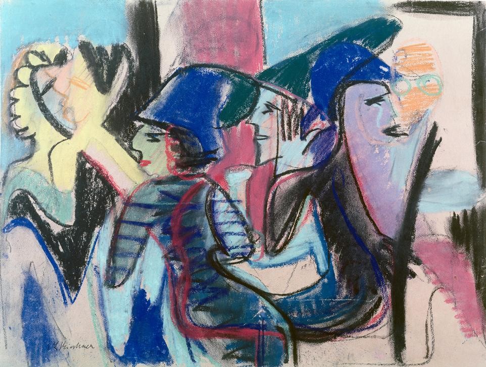 Ernst Ludwig Kirchner, Fünf Gäste im Café (Deutsche Kunst,Gastronomie,Gesellschaft,Kunst,Expressionismus,Die Brücke,Cafe,Geselliges Beisammensein)