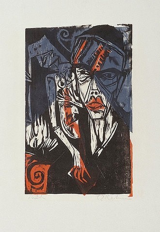 Ernst Ludwig Kirchner, Kämpfe. Blatt 3 der Bildfolge zu Adelbert von Chamissos Erzählung ?Peter Schlemihls wundersame Geschichte?. 1915 (Essen,Museum Folkwang,Kirchner,Ernst Ludwig,1880-1938,Farbholzschnitt,Kirchner,Ernst Ludwig Kirchner)