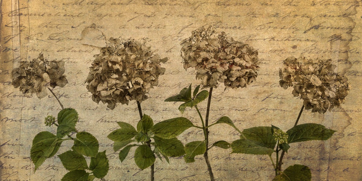 Konfiguration benutzen (Blumen, Trockenblumen, Hortensien, Pflanze, Botanik, Reihe, Brief, Handschrift, Nostalgie, Wunschgröße, Fotokunst, Wohnzimmer, Treppenhaus, bunt)