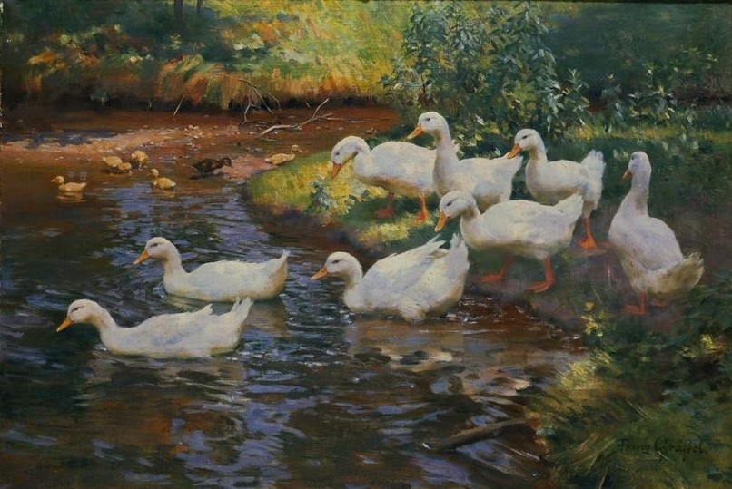 Entenfamilie (Enten mit Küken am Bachufer) von FRANZ GRÄSSEL (223293)