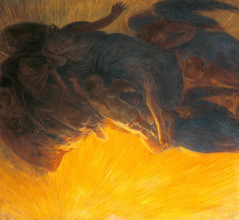 Gaetano Previati , The creation of light (Schöpfung, Licht, Sonnenlicht, Sonnengott, Engel, Symbolismus, Malerei, Klassische Moderne, Wunschgröße, Wohnzimmer,)
