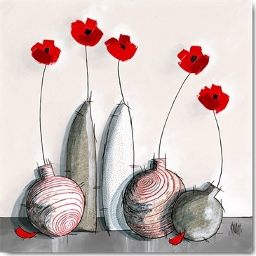 Géraldine Maurier, Légère (Blumenvasen, Blüten, Blumenstengel, Stillleben, modern, zeitgenössisch, dekorativ, Treppenhaus, Wohnzimmer, Malerei, Wunschgröße, bunt)