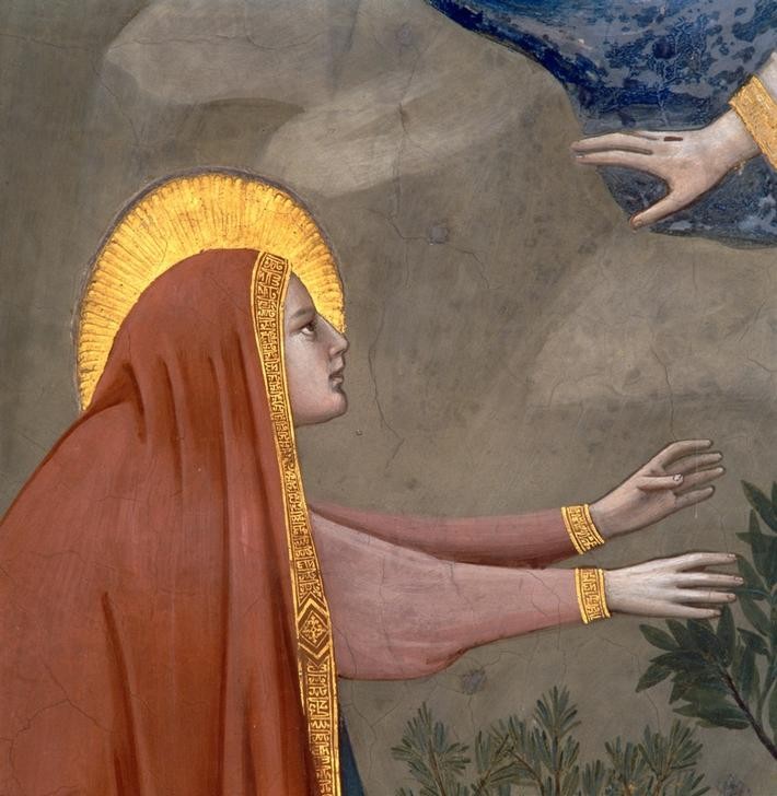 Giotto di Bondone, Die Auferstehung (No li me tangere, Grab, Auferstehung,Jesus Christus, Frau, Klassiker, Gotik, Religion, Christentum, Neues Testament, Malerei, Detail, Wunschgröße, Schlafzimmer, Wohnzimmer, bunt)