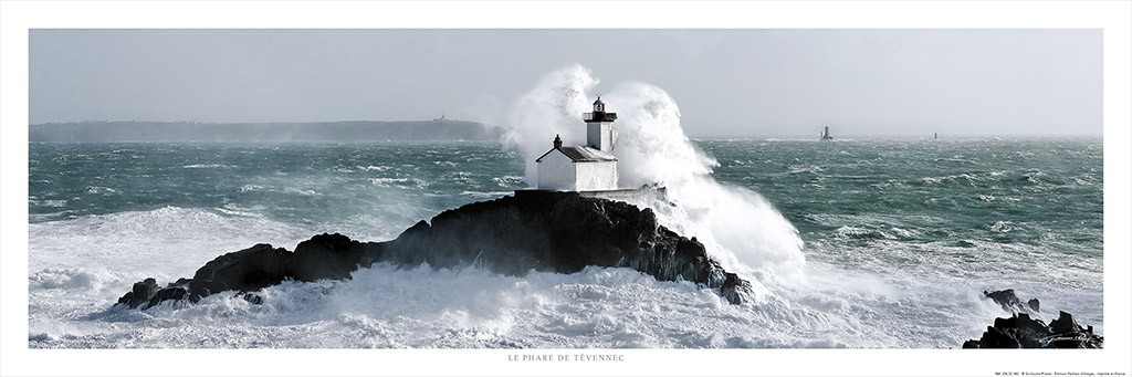 Guillaume Plisson, Pointe du Raz - Phare de Tévennec - Bretagne (Leuchtturm, Meer, Seegang, Wellen, Gischt, Wasserkraft, Frankreich, Bretagne, Atlantik, Meeresbrise, Treppenhaus, Badezimmer, Wohnzimmer, Fotokunst, bunt)