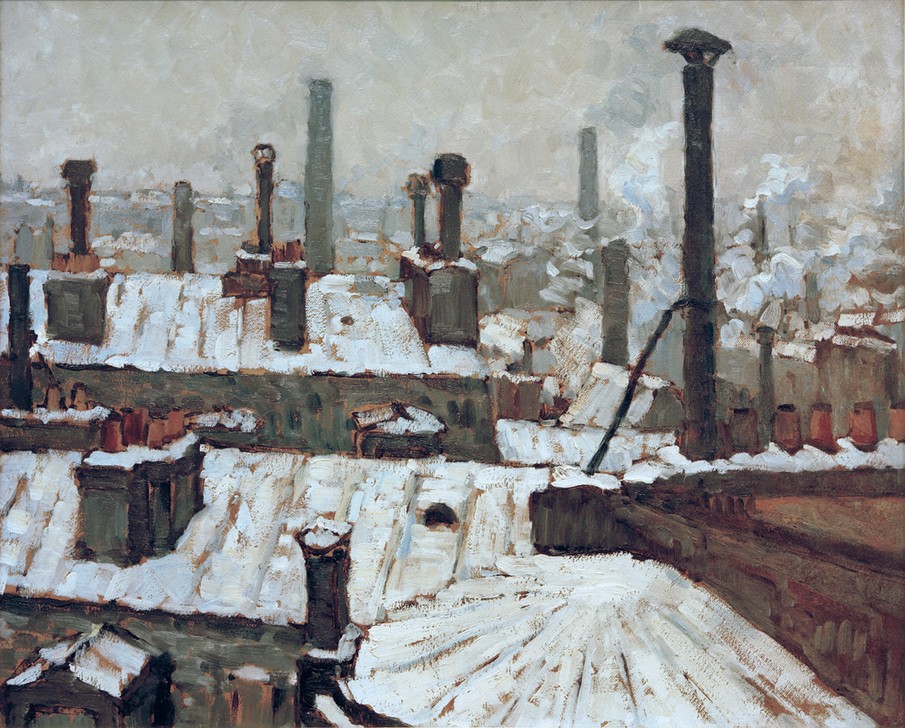 Gustave Caillebotte, Verschneite Dächer (Architektur,Dach,Jahreszeiten,Kunst,Winter,Schornstein,Impressionismus,Schnee,Stadtansicht,Architekturdarstellung,Französische Kunst,Dachlandschaft)