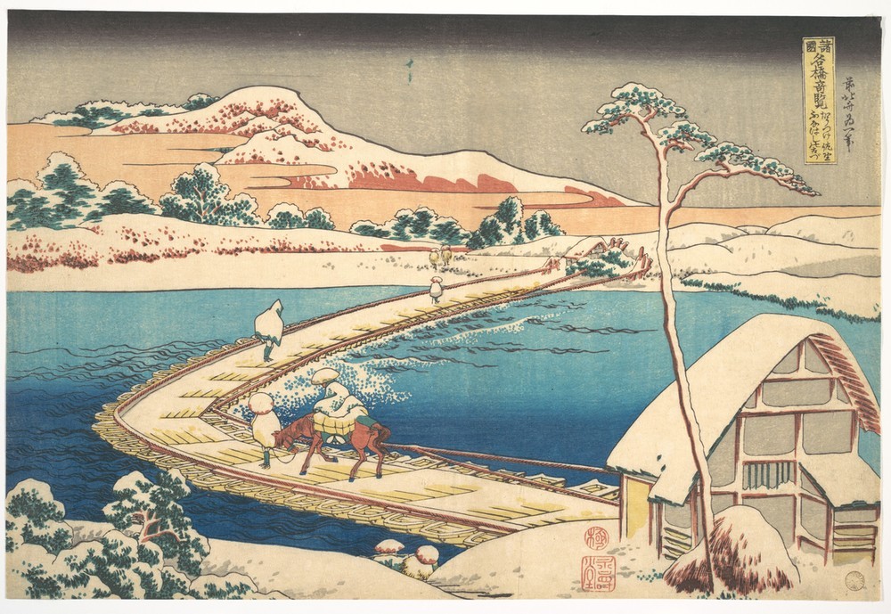 Katsushika Hokusai, Old View of the Boat-bridge at Sano in Kozuke Province