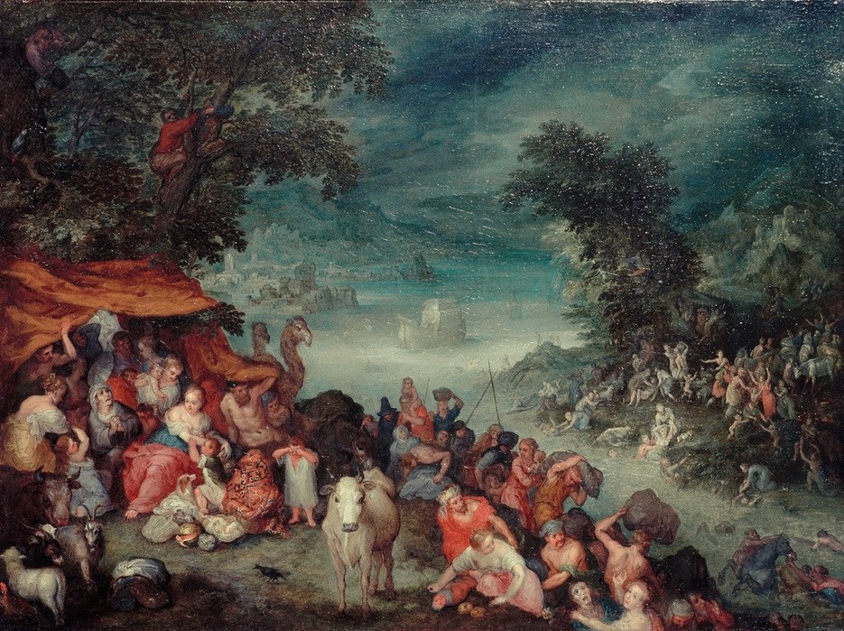 Jan Brueghel der Ältere, Sintflut mit der Arche Noah (Hochwasser,Hochwasser Und Überschwemmung,Altes Testament,Bibel,Katastrophe,Überschwemmung,Manierismus,Sintflut,Arche,Niederländische Kunst,Flut,Naturkatastrophe,Jüdisch-Christlich)