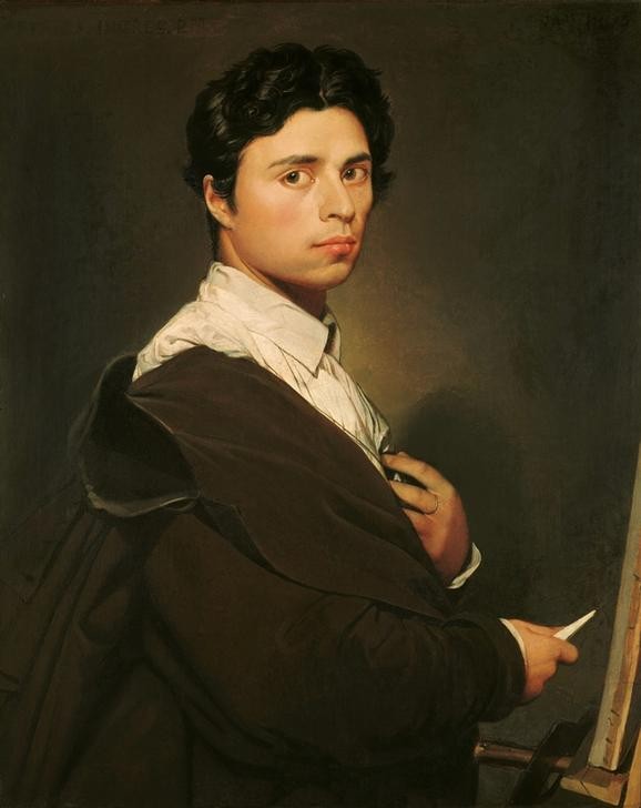 JEAN-AUGUSTE-DOMINIQUE INGRES, Autoportrait à l’age de 24 ans (Jugend (Lebensalter),Künstler,Maler (Künstler),Mantel,Mann,Staffelei,Männerschmuck,Selbstbildnis,Klassizismus,Künstler Bei Der Arbeit,Portrait,Französische Kunst,Halbfigur,Person)