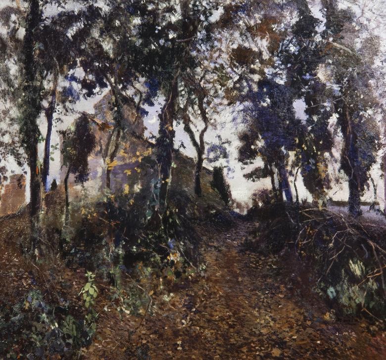 Joaquim Mir, Garten (Landschaft, Park, Bäume, Garten, Kirche, Hügel, Katalanische Kunst,  Post-Modernisme, Malerei, Klassische Moderne, Wunschgröße, Wohnzimmer, Treppenhaus, bunt)