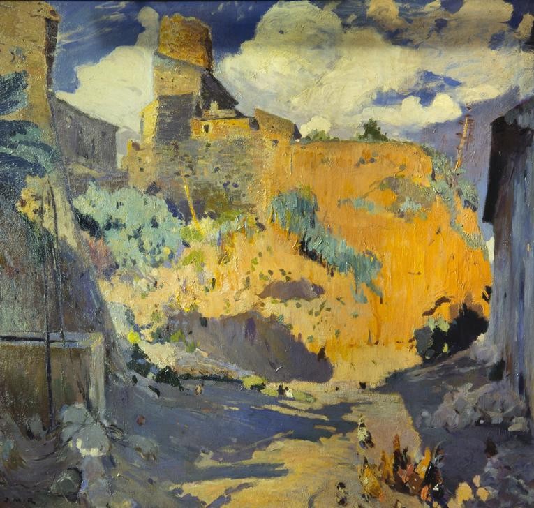 Joaquim Mir, Land (Dorf, Felsen, Bergdorf, Landschaft, Landleben, Post-Modernisme, Malerei, Klassische Moderne, Wunschgröße, Wohnzimmer, Treppenhaus, bunt)