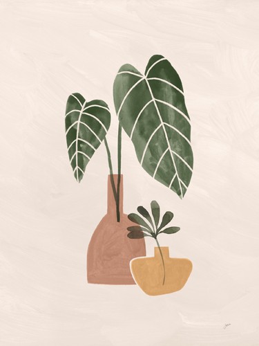 Karyn Panganiban, Boho Vessels I (Stillleben, Vasen, Blätter, modern, reduziert, flach, Wunschgröße, Treppenhaus, Esszimmer,)