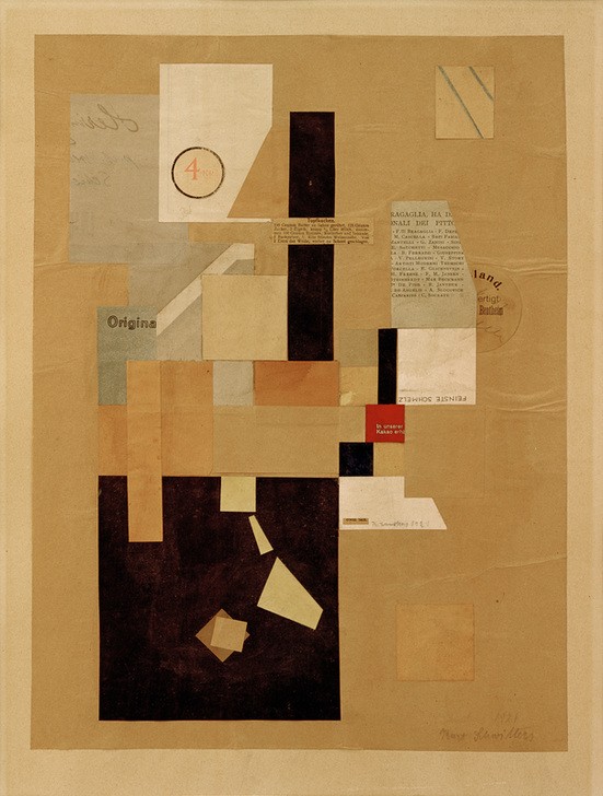 Kurt Schwitters, Ohne Titel (4 KR) (Klassische Moderne, Malerei, Abstrakt, Collage, Zeitung,    geometrische Formen, Papierschnipsel, Dadaismus, Wohnzimmer, Treppenhaus, Wunschgröße,  bunt)
