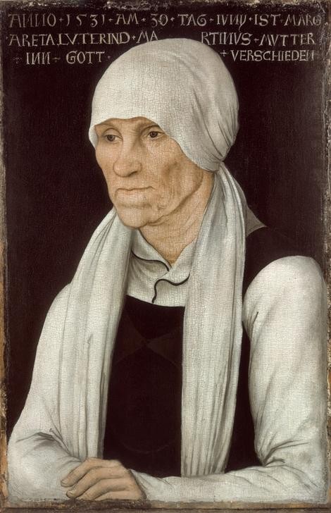 Lucas Cranach der Ältere, Luthers Mutter (alte Frau, Kopfbedeckung,  Kopftuch, Luther, Bildnis,  Frau, Gesellschaft, Menschen, Portrait, Klassiker, Renaissance, Wunschgröße, Wohnzimmer)