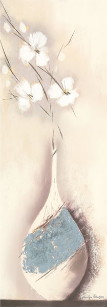 Marilyn Robertson, PLATINIUM I (Malerei, Stillleben, Blume, Blüte, Sommer, filigran, Vase, modern, dekorativ, Wunschgröße, Schlafzimmer, Treppenhaus, Wohnzimmer, blass/pastell)