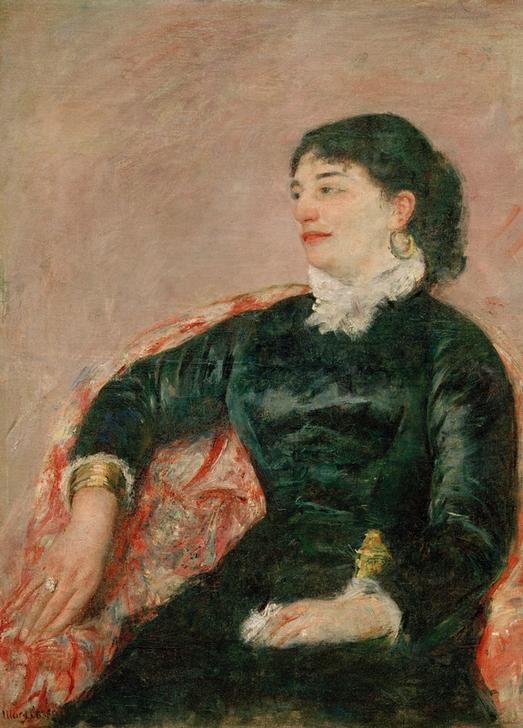 Mary Cassatt, Portrait of an Italian Lady (Damenmode,Frau,Kunst,Mensch,Mode,Schmuck,Volkskunde,Impressionismus,Ohrring,Frauenkunst,Portrait,Armreif,Taschentuch,Amerikanische Kunst,Trauerkleidung,Kleid,Us-Amerikanische Kunst,Kleidung (Allgemein),Sessel,Sitzen,Schwarze Haare,Braune Haare,Halbfigur,L)