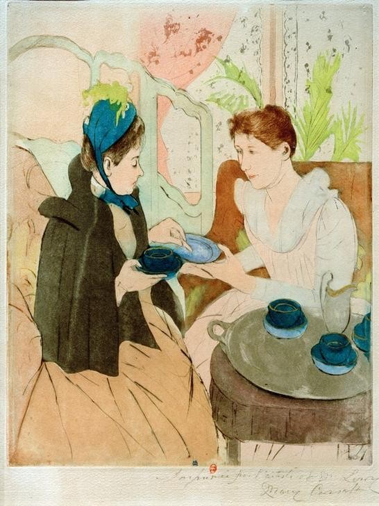 Mary Cassatt, The Visit (Besuch,Einladung,Essgeschirr,Essen Und Trinken,Frau,Freundschaft (Allgemein),Gesellschaftliches Leben,Handschrift,Kaffee,Kunst,Mensch,Nachmittagskaffee,Teeservice,Damenkränzchen,Impressionismus,Frauenkunst,Amerikanische Kunst,Gastfreundschaft,Kaffeeklatsc)