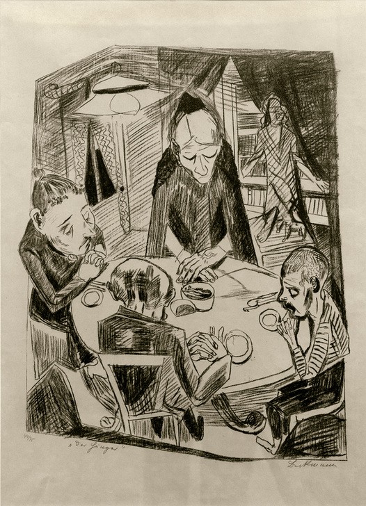 Max Beckmann, Hunger (Menschen, Gesellschaft, Familie, Expressionismus, Klassische Moderne, Grafik, Studie, Wohnzimmer, Treppenhaus, Wunschgröße, schwarz/weiß)
