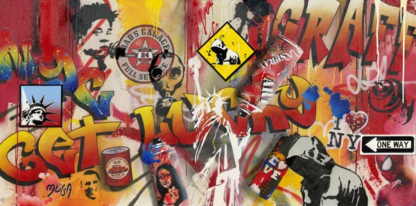 Möga, GET LUCKY GRAFFITY (Graffity, Sprayer, Pop, Comic, explosiv, modern, grell, Wild, Spraydose, Typographie, Wandmalerei, Wunschgröße, Jugendzimmer, bunt)