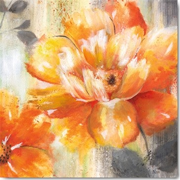 Nan, An Orange Crush II (Malerei, Blumen, Blüten, orange Rosen, Sommer, Treppenhaus, Wohnzimmer, Wintergarten, orange / grau)