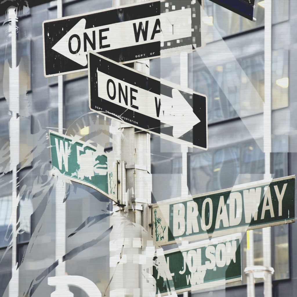 Oliver Rossdeutscher, One Way (New York,Verkehrsschilder, Broadway, Einbahnstraßen, Städte, Fotokunst, Treppenhaus, Wohnzimmer, XX-Um die Welt)