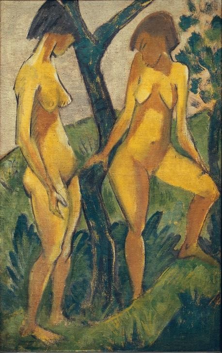 Otto Mueller, Zwei Mädchen (Deutsche Kunst,Erotik,Frau,Freundschaft (Allgemein),Kunst,Mädchen,Akt,Expressionismus,Die Brücke,Im Freien (Allgemein))