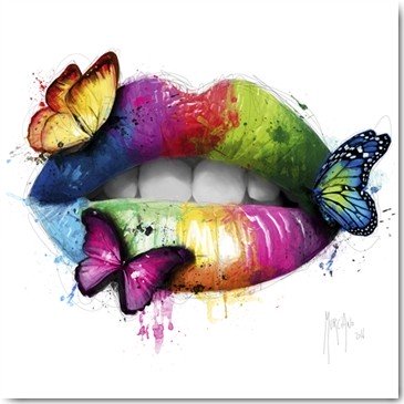 Patrice Murciano, Butterfly Kiss (Pop Art, Erotik, Punk, Mund, Lippen, Schmetterlinge, Kuss, Sexy, sinnlich, Leuchtfarben, Neon, Schrill, Modern, Malerei, Jugendzimmer, Wohnzimmer, Jugendzentrum, Wunschgröße,  bunt)