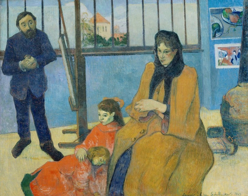 Paul Gauguin, L’atelier de Schuffenecker (Atelier,Eltern Mit Kind,Familie,Gruppenbild,Kind,Künstlerleben,Künstler,Maler (Künstler),Staffelei,Trauer,Französische Kunst,Paar,Traurigkeit,Gefühl (Stimmung),Synthetismus,Person)