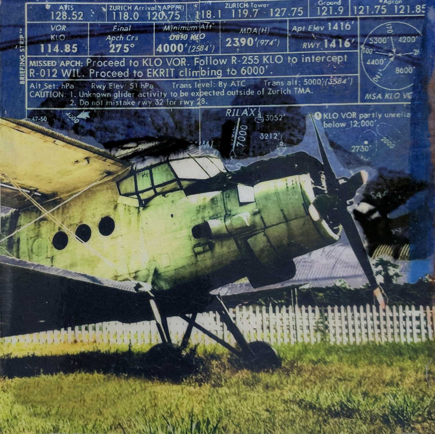 Peter Sander, Doppeldecker (Flugzeug, Propeller, Nostalgie,   Fotokunst, Popart,  modern, illustrativ, Wunschgröße, Treppenhaus, Wohnzimmer,)