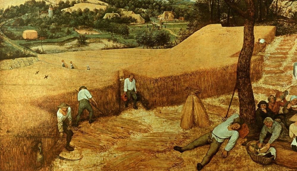 Pieter Brueghel der Ältere, Die Kornernte (Landwirtschaft, Ernte, Getreide, Brot, Jahreszeiten, Sommer, Sense, Garben, Schnitter,Pause, Hitze, Erholung, Renaissance, Klassiker,  Malerei, Wunschgröße, Wohnzimmer, bunt)
