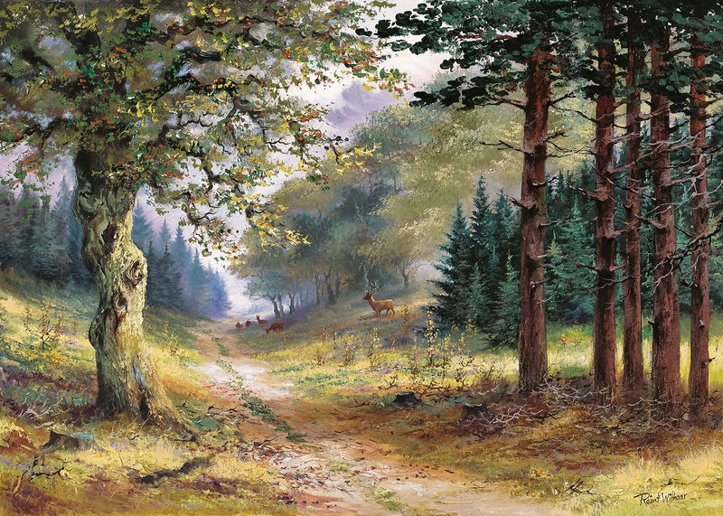 Reint Withaar, Trees (Wald, Waldweg, Weg, Bäume, Einsamkeit, Ruhe, Idylle, Landschaft, Treppenhaus, Wohnzimmer, Esszimmer, Malerei, Wunschgröße, bunt)