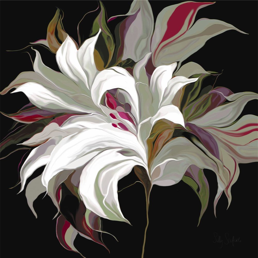 Sally Scaffardi, Lily Xx (Blumen, weiße Lilien, Floral, Blüten, Blütenblätter, Malerei, Treppenhaus, Wohnzimmer, Esszimmer,  bunt)