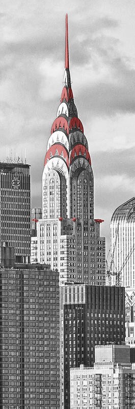 Sandro De Carvalho, CHRYSLER SKYLINE V (Wolkenkratzer, Hochhaus, Skyline, Chrysler Haus,  Architektur, New York, Städte, Metropole, Fotokunst, Colorspot, Wunschgröße, Wohnzimmer, Büro, Treppenhaus, schwarz/weiß, rot)