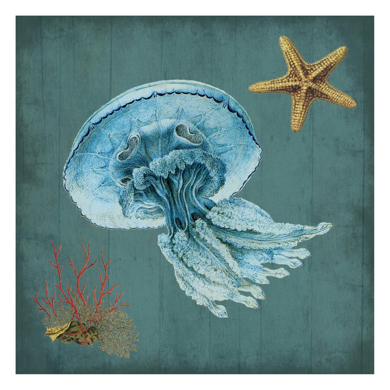 Sheldon Lewis, JELLYFISH III (Qualle, Tentakeln, Seestern, maritim, Meerestiere, Grafik, Badezimmmer, Treppenhaus, Wunschgröße, bunt)