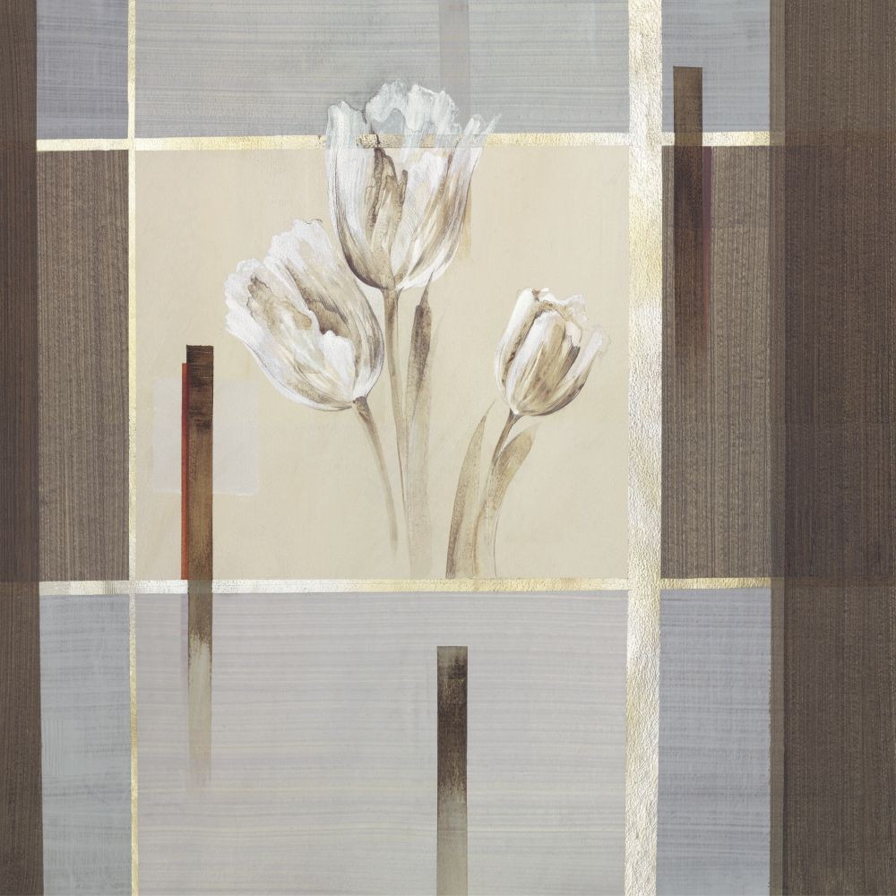 Verbeek & Van Den Broek, Silver Dream II (Malerei, modern, abstrakte Malerei, Farbflächen, Quadrate, Blumen, Blüten, Wohnzimmer, Treppenhaus, grau / braun)