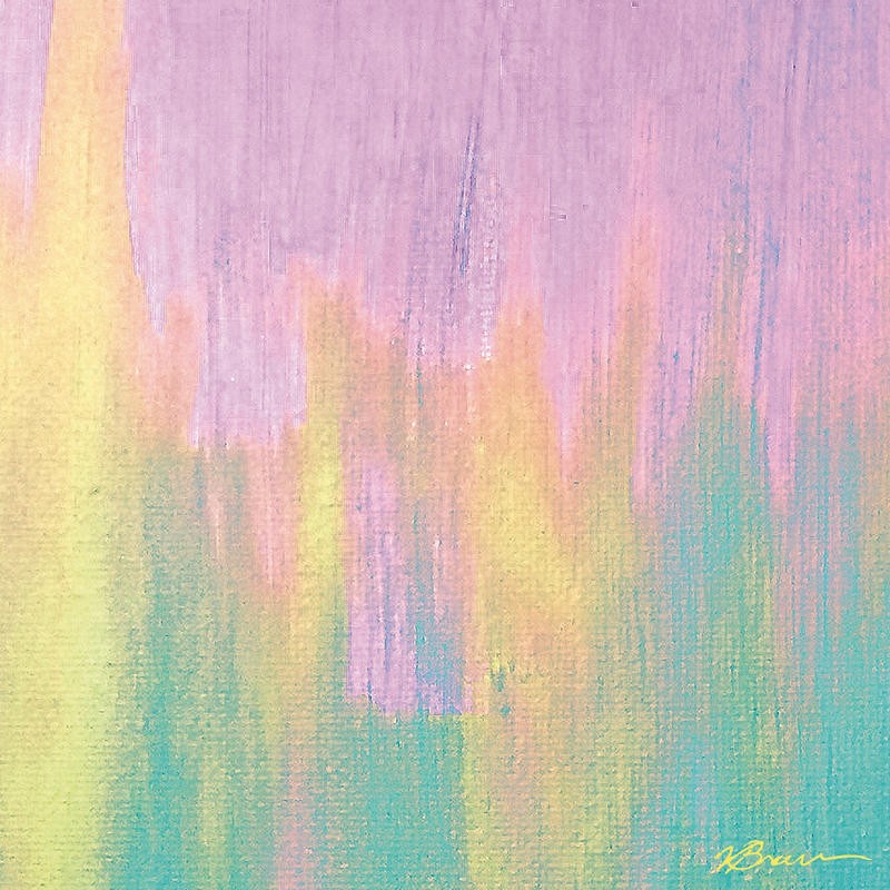 Victoria Brown, COTTON CANDY IV (Abstrakte Malerei, Farbfelder, Farbflächen modern, zeitgenössisch, Wohnzimmer, Treppenhaus, Wunschgröße, bonbonfarben, zart/gelb/rosa)