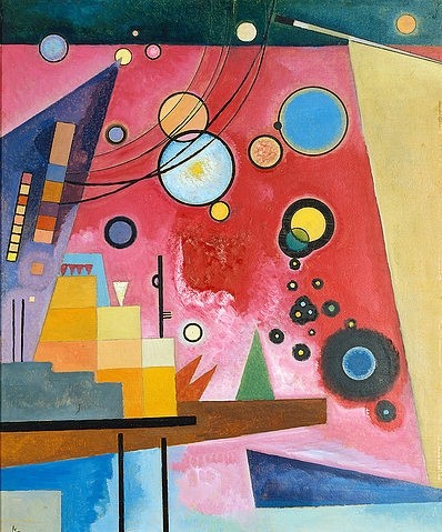 Wassily Kandinsky, Schweres Rot. 1924 (Klassische Moderne, Malerei, abstrakte Kunst, geometrische Formen, abstrakte Muster, Linien, Kreise, Dreiecke, Bögen, Wohnzimmer, Büro, Arztpraxis, Wunschgröße, bunt)